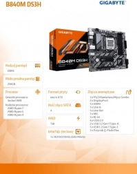Discover excellent performance with the GIGABYTE B840M DS3H AM5 motherboard that supports the latest AMD processors. With an 8+2+2 phase digital VRM solution, it ensures stable and efficient power delivery for your components. Take advantage of four DDR5 slots with support for AMD EXPO memory modules for fast and stable memory operation.