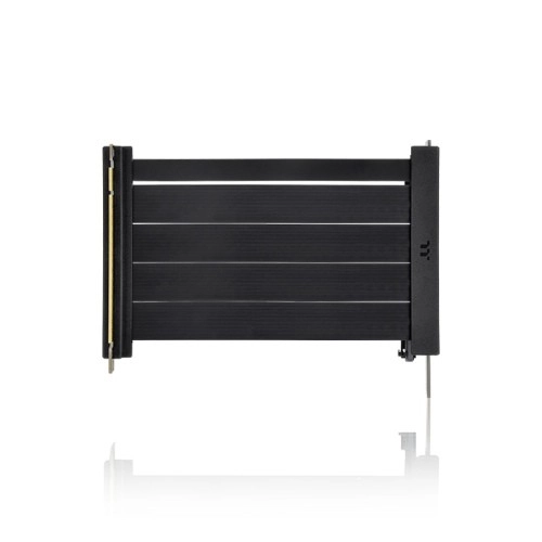 With a dual 90° angle design, the cable allows flat arrangement between the motherboard and the graphics card, reducing the required space.