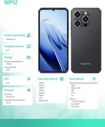 Oukitel WP52 5G is an ideal choice for those seeking a durable and reliable smartphone. It offers a large 6.6'' IPS display with a resolution of 1612 x 720 pixels, protected by Corning Gorilla Glass 5. This phone is not only durable but also powerful thanks to the octa-core MediaTek Dimensity 6100+ processor with a frequency of 2.2 GHz.