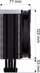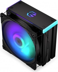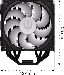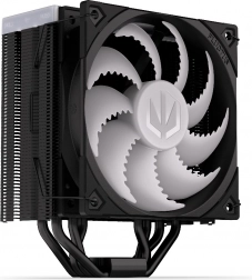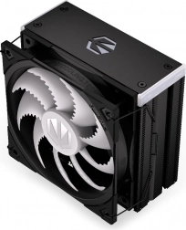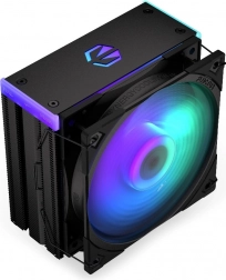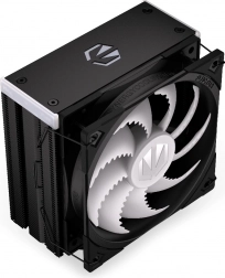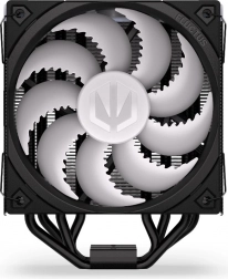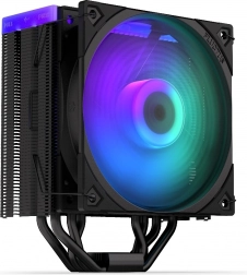 It includes the premium Fluctus 120 PWM ARGB fan on an FDB bearing with specially shaped blades and a wavy edge to reduce tonal noise. The fan‑stop feature enables semi-silent operation at low loads. The elegant all‑metal black design and addressable ARGB lighting on both the fan and top cover easily match any build—either via the motherboard or the included Nano‑Reset ARGB controller.