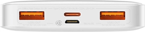 In addition to its high charging capacity, the powerbank is equipped with three ports - two USB-A and one USB-C, allowing charging of up to three devices at the same time. Enjoy the convenience of simultaneously charging a tablet and two smartphones!
