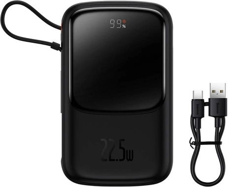 The Baseus Qpow Pro is a practical and compact power bank, ideal for users who need power on the go. With its built-in USB-C cable and two additional output ports, it allows charging up to three devices simultaneously, making it a versatile helper.