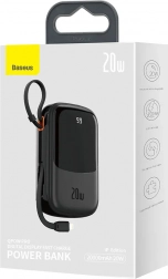The Baseus Qpow Pro is a high-performance power bank that allows you to always have enough power on the go. It is equipped with a built-in Lightning cable and two ports: USB-C and USB, enhancing its versatility and compatibility with many devices.