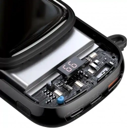 The Baseus Qpow Pro power bank is equipped with a built-in Lightning cable and USB-C and USB ports, allowing simultaneous charging of up to three devices. Support for multiple fast charging protocols ensures quick and efficient charging.