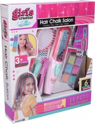Create unique hairstyles with this practical set for colorful hair styling. It includes a brush, clips, hair chalks, and a color applicator for easy, fun hair decoration at home.