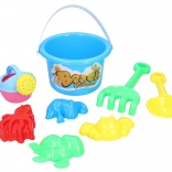 - 8 pieces in the set: bucket with picture, shovel, watering can, rake, and 4 molds