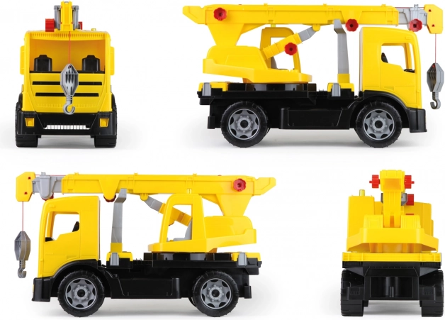 A robust kids’ crane truck from LENA delights little builders with realistic functions and a durable build. It is fully mechanical, featuring a 270° rotating boom, extendable stabilizer legs, and a winch with hook for lifting loads. When fully extended, the crane reaches an impressive length up to 115 cm, and thanks to the high-quality plastic it can handle plenty of imaginative play.