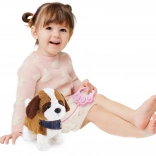 This interactive plush puppy brings lots of fun thanks to a combination of movement and sound effects. After connecting the cable with controller to the port on the neck, it responds to different inputs: pressing the leash makes it walk, touching the head triggers effects, and clapping sends it off for another stroll. Its soft design makes it ideal for everyday play.