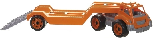 Discover the fun of a car transporter that stands out with sturdy construction and an eye-catching color design. Thanks to functional features like loading ramps and moving parts, kids can easily load their favorite toy cars and set off on new adventures.