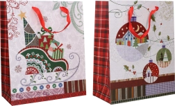 This quality paper gift bag with a Christmas motif makes wrapping gifts easier and gives them a festive look. Thanks to its 26 × 32 × 12 cm dimensions, it is suitable for books, cosmetic sets, candles, or smaller boxes. Just place the gift inside and you have an instantly ready, elegant wrap.