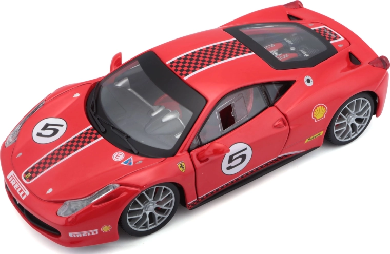 Enjoy a finely crafted metal model of the Ferrari 458 Challenge in 1:24 scale, ideal for collectors and young racers alike. It features opening parts, steerable front wheels via the steering wheel, and realistic racing details in an attractive red finish.