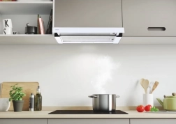 Telescopic range hood with a stylish white design that perfectly fits into every modern kitchen.