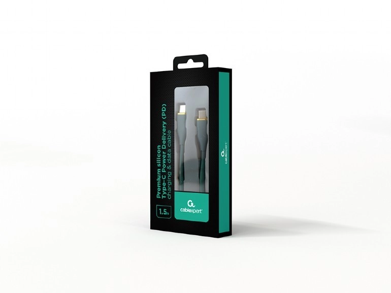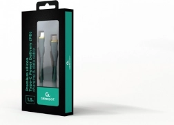 USB-C cable with a length of 1.5 meters in a modern green color, ideal for fast charging and data synchronization between devices with Type-C ports.