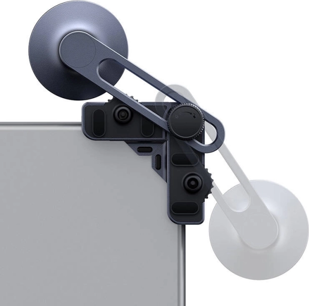 Two clamping arms with knobs securely attach the mount to screens 7.5–14 mm thick. The hanging design does not obstruct the car’s display.