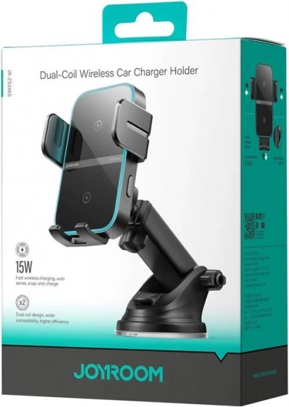 An elegant car mount with wireless charging from Joyroom combines fast Qi charging up to 15 W, automatic electric arm clamping, and secure vent mounting. With dual charging coils, a durable ABS/PC build, and modern accent lighting, it’s an ideal choice for convenient and safe phone use on the road.