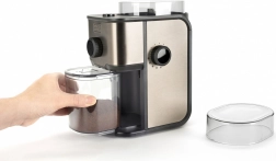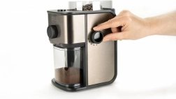 You have the option to adjust the grind's coarseness according to personal preferences - finer or coarser. Additionally, you have the option to choose the quantity of ground coffee from 2 to 12 cups, fitting comfortably into a 200g container.