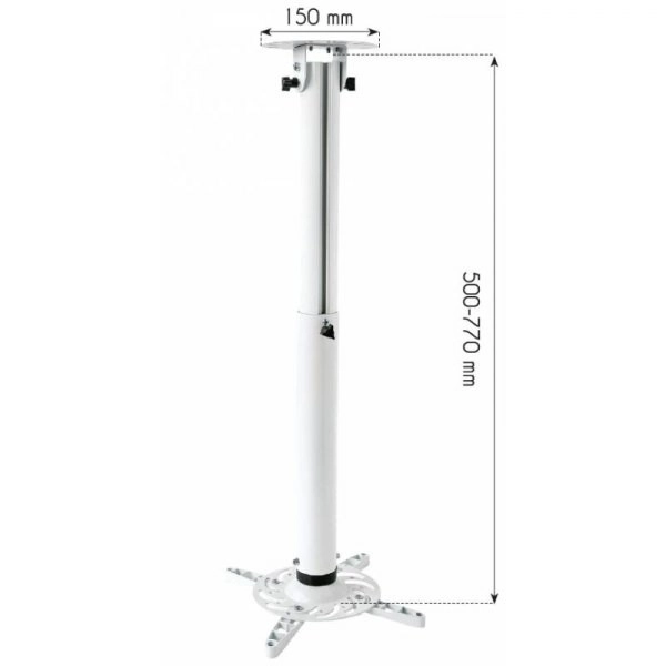 This white ceiling projector mount combines a durable metal build with practical flexibility for perfect projector placement. Thanks to the adjustable column 50–77 cm, you can easily set the projection height to your needs, while the universal mounting plate ensures compatibility with most projectors on the market.