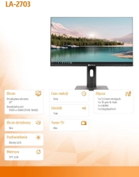 The Monitor Neovo LA-2703 combines style and performance into one compact device. It's the perfect choice for daily use in offices, households, and gaming enthusiasts. With a wide range of inputs, including HDMI, VGA, and DP, it offers high flexibility in connection.