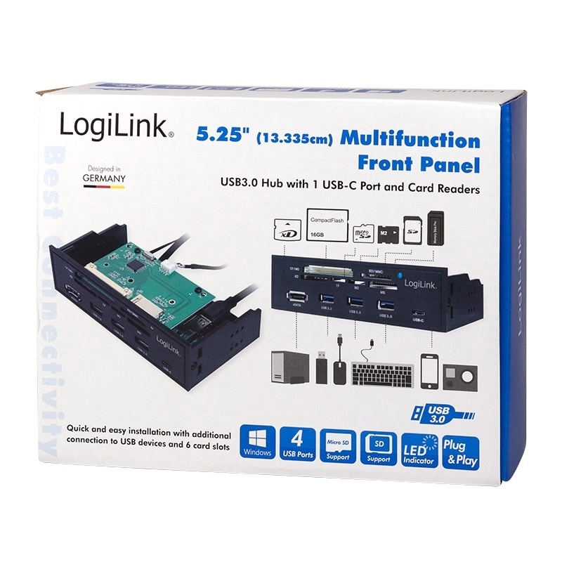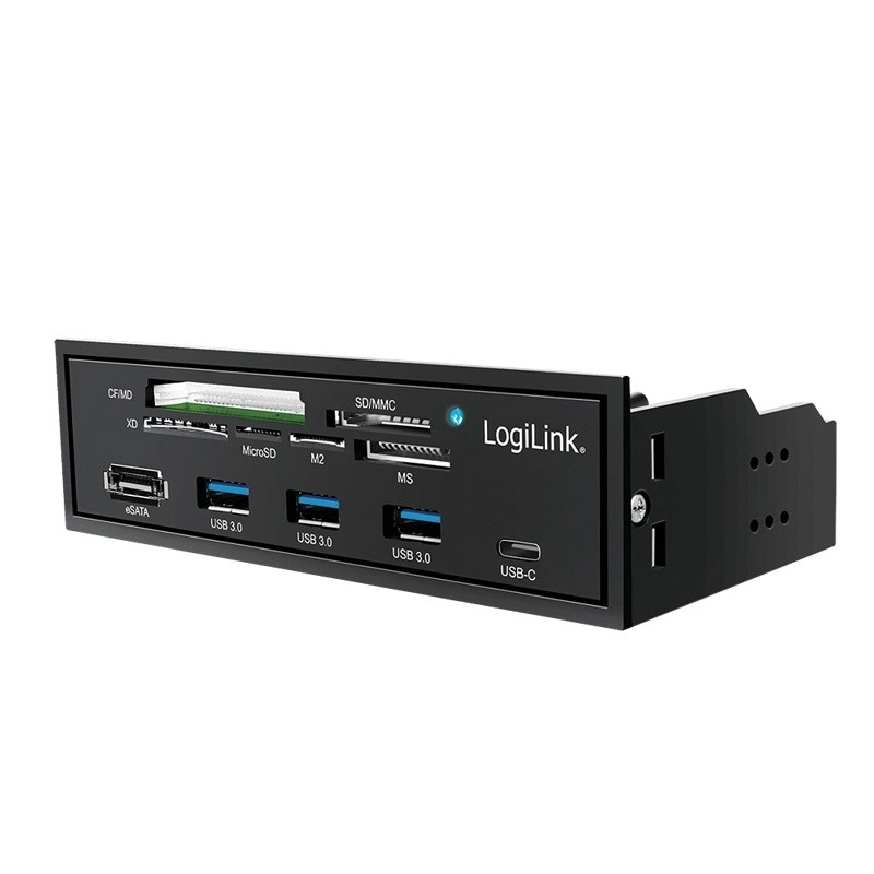 Need to quickly copy data from various memory cards while keeping plenty of USB ports within reach? This LOGILINK multifunction 5.25" panel combines a card reader and USB/eSATA hub into one elegant solution. It saves time and space and significantly streamlines everyday media workflows.