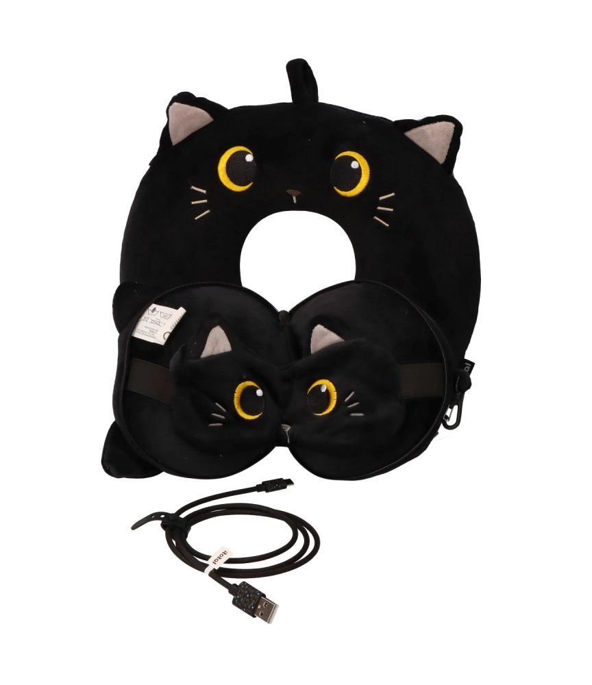 This stylish and functional travel pillow featuring a cute black cat is ideal for planes, cars, and trains. The U-shape gently hugs your neck and helps keep your head in the right position so you can truly rest on the go. The velvety surface feels pleasant, and the cover can be removed and washed with ease.