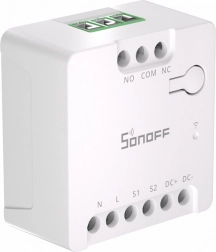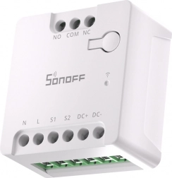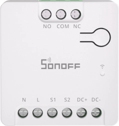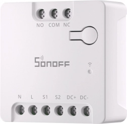The compact smart switch SONOFF MINI‑D brings a dry contact, 2.4 GHz Wi‑Fi, and full MATTER support for easy integration with GOOGLE HOME, APPLE HOME, and AMAZON ALEXA. It lets you control devices on AC 100–240 V and DC 12–48 V, ideal for garage doors, heating systems, valves, or switching larger loads via a contactor. It offers schedules, timers, and automations for safe and efficient operation.
