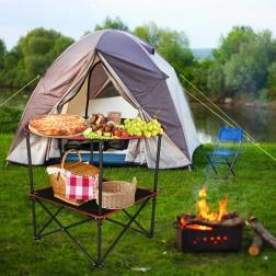 The folding camping table is designed to be your travel companion. It is lightweight and compact, making it an ideal choice for anyone who spends time outdoors. It provides a comfortable place for meals, relaxation, or entertainment, and takes up very little space when folded. Weather-resistant, so you can confidently take it to the mountains, the lake, or the beach.