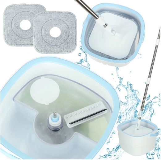 This mop features a dual-chamber system that prevents dirty water from mixing with clean water, which is key for hygienic cleaning. The telescopic pole made of lightweight aluminum lets you adjust the length to your needs and guarantees durability and ease of use.