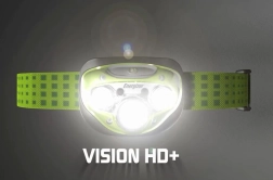Impact- and weather-resistant body and lenses. The adjustable strap keeps the headlamp secure even when moving.