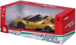 The Ferrari SF90 Spider car model in 1:18 scale from Bburago is an ideal gift for collectors and sports car fans. This model is made from high-quality metal and plastic, which ensures its durability and authentic appearance. Details like the black wheels, open roof, and intricately crafted interior will ensure you are thrilled with its execution.