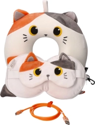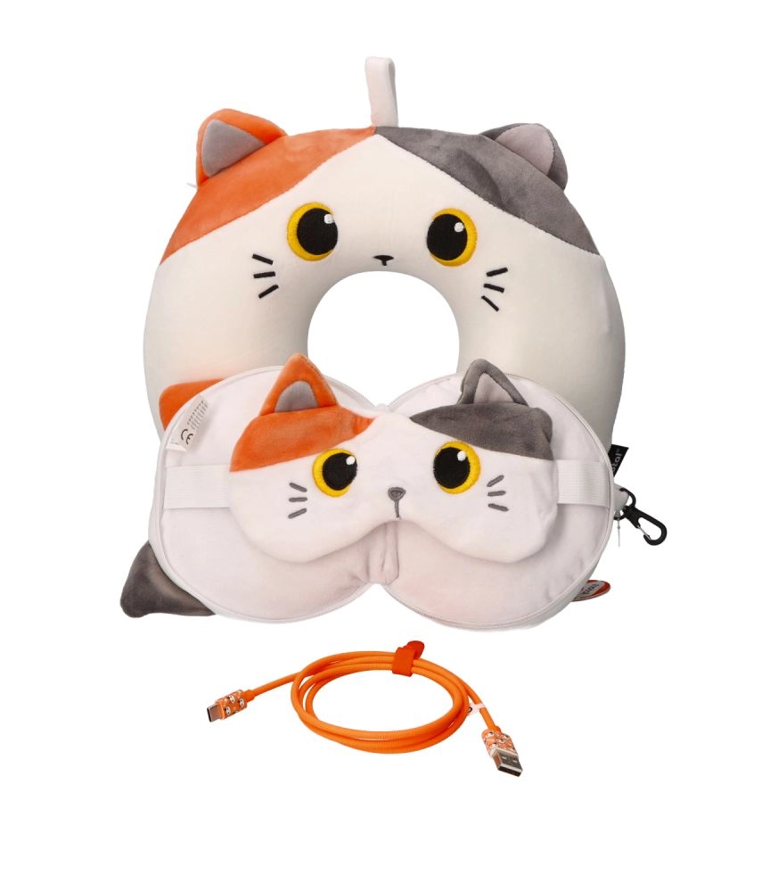 Enjoy comfortable travel with a soft U-shaped cat pillow that provides great support for the neck and head. It has an easily removable cover, is soft to the touch, and is ideal for children and adults aged 3 and up. A perfect companion for the car, plane, and home.