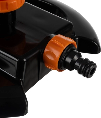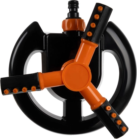 Three rotating arms with 12 nozzles disperse water in all directions. Smooth 360° rotation ensures uniform irrigation of irregular areas without having to move the sprinkler.