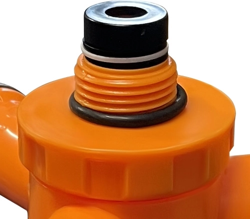 The garden hose connector and seals ensure a tight, leakproof connection. The integrated hose tightening system simplifies installation and prevents water loss.