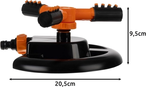 Dimensions 20.5 × 9.5 cm and a light yet sturdy base provide stability on the lawn. Easy to carry and store, while staying firmly in place during operation.