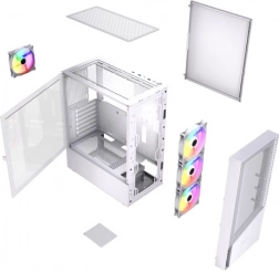 The Fornax 4300 is a white midi tower case designed for gamers and demanding users who require excellent airflow, striking ARGB lighting, and convenient assembly. The front and top mesh panels promote intense air circulation, while four pre-installed ARGB fans keep components at optimal temperatures even during long gaming sessions.