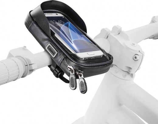 The durable case material repels water and dirt, effectively protecting the phone from rain and dust. A practical side opening allows the connection of headphones and charging cable without removing the phone. Additionally, the case has extra compartments for storing cash, charging cables, or a power bank.