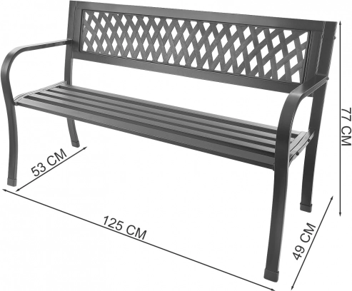 This outdoor bench combines durability, comfort, and a timeless look. The metal frame is treated with a protective finish that guards against corrosion, moisture, and UV radiation. Thanks to the ergonomically shaped backrest, you will enjoy comfort even during longer seating.
