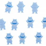 Colorful numerals and little hippo figures help children understand values and simple math tasks.