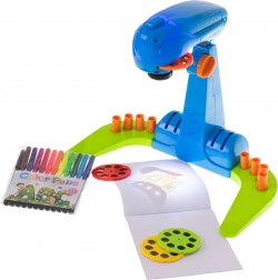 The children's drawing projector is a fun interactive toy that supports creativity and the development of fine motor skills. The projector is equipped with colorful wheels, each containing 8 images for projection.
