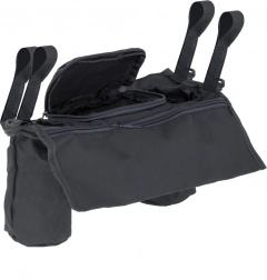 Simple fastening with hook-and-loop straps on the sides keeps the organizer stable on the handle. Two spacious drink compartments with a diameter of about 7 cm and additional pockets for small items provide plenty of space for everything you need at hand.