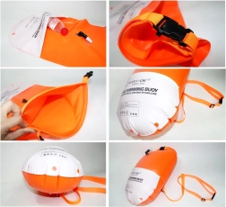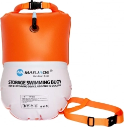 Enhance your safety and comfort when swimming in open water with this inflatable buoy featuring an integrated 10 L waterproof bag. Its bright orange color ensures excellent visibility, adds extra buoyancy, and lets you keep keys, phone, and documents dry. The lightweight build, roll-top closure, and adjustable waist strap make it an ideal companion for swimmers, triathletes, and paddlers alike.