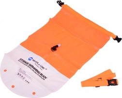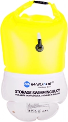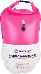 This dry bag-style swim buoy combines safety and practical storage in one. Durable PVC material, a roll-top closure with buckle, and a dedicated inflation valve keep your items dry and the buoy firmly inflated. The bright color significantly increases visibility for boats and other swimmers.