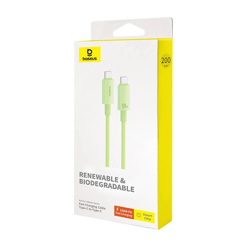 Made from biodegradable material, the cable is 42% made of corn starch, reducing its ecological footprint. It has passed durability tests that ensure its resistance to bending and other damage.