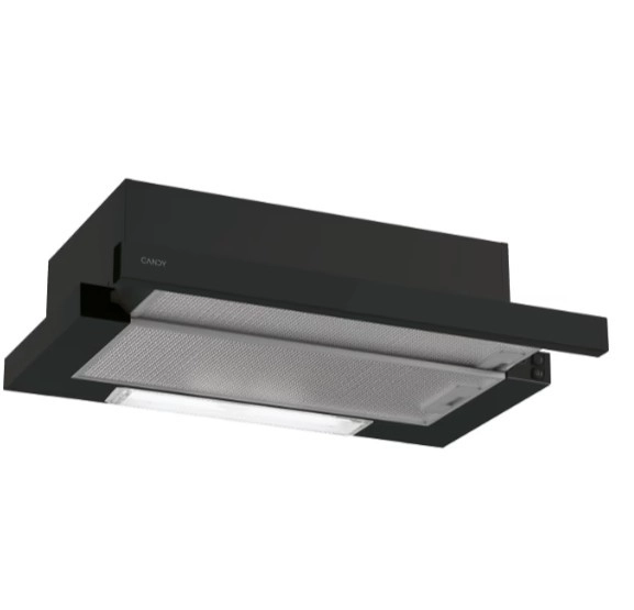 This telescopic kitchen hood by Candy is the ideal solution for any modern kitchen. With its sleek black and gray design, it becomes an efficient helper in removing smoke and odors.