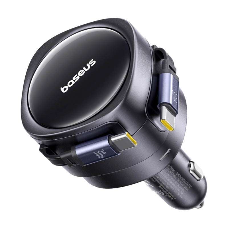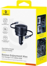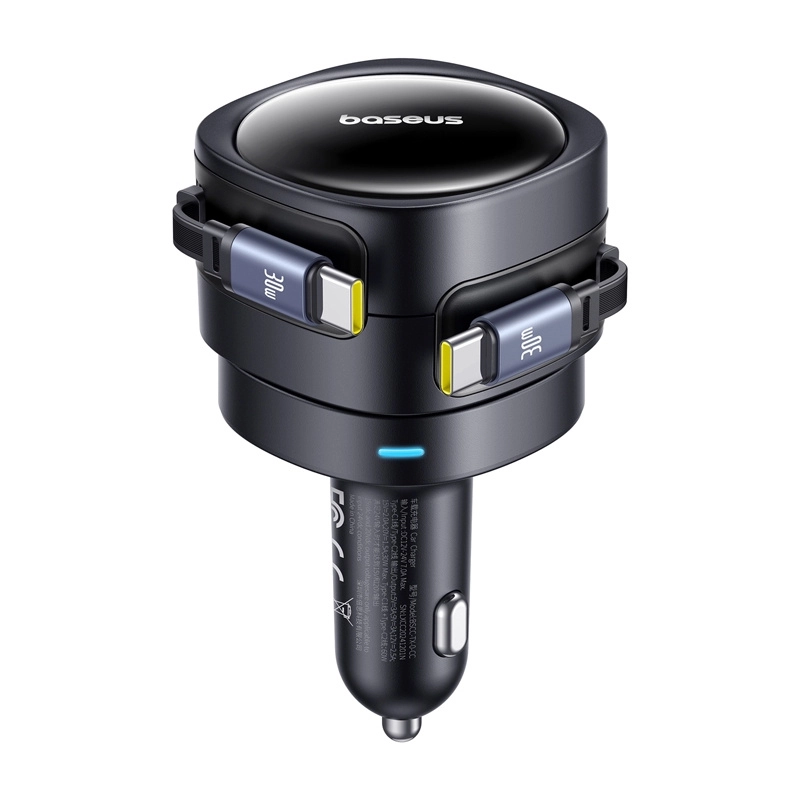 Baseus Car Charger with dual USB-C cables and 60 W output ensures fast charging and reliability in your vehicle.
