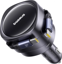 The Baseus Car Charger offers a compact and elegant design, ideal for versatile use in a vehicle. With dual 80 cm long USB-C cables, it allows charging two devices simultaneously without tangled cables thanks to the rotating mechanism up to 180°.