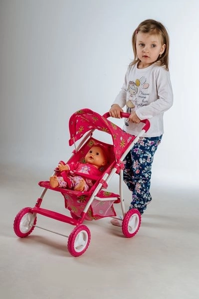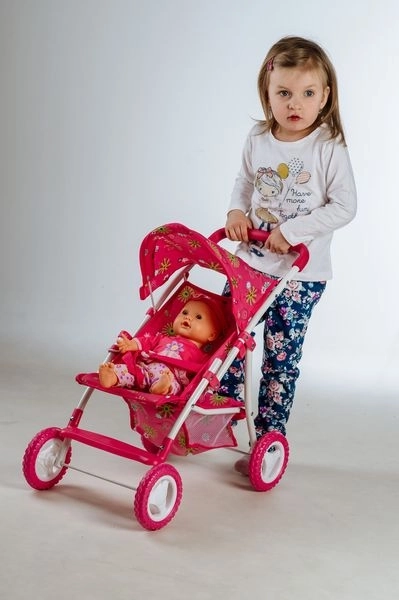 The sports stroller for dolls offers excellent stability and easy control due to its high-quality construction combining metal and plastic. Thanks to the foldable canopy, you can easily protect the doll from the 'sun'. The storage space below is perfect for carrying all the essential accessories needed for everyday adventures. This stroller is designed to meet the needs of children aged 3 and up.