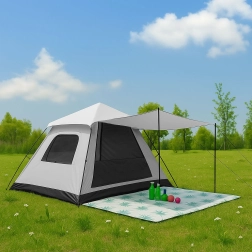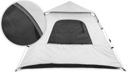 The tent is equipped with an automatic setup system, which allows for quick and easy assembly without the need for tools. The use of steel and fiberglass makes the tent structure solid and stable even on uneven terrain.