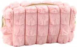Elegant and soft to the touch, this plush cosmetic bag is an ideal accessory for daily use. Made from a soft, plush material in a gentle pink color, it not only pleases the eye but also boasts great practicality. Its modern design perfectly matches current trends and features a shiny zipper and a decorative handle in a rose-gold color.