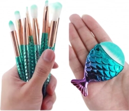 This set includes brushes for all phases of makeup - from applying foundation, blending eyeshadows to precise contouring. The soft, synthetic bristles are gentle on the skin, and the ergonomic, rainbow handles in the shape of a mermaid tail fit perfectly in your hand while adorning every cosmetic bag.