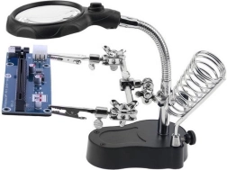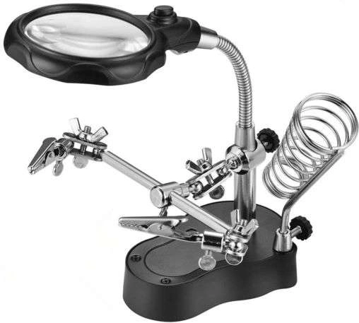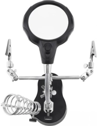 - Two adjustable arms with alligator clips for securing components at any angle